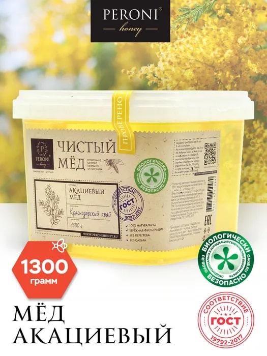 Чистый мёд Peroni Honey 1300 г. Акациевый мед (пластик)