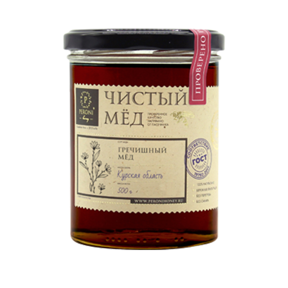 Чистый мёд Peroni Honey 500 г. Гречишный мед (стекло)
