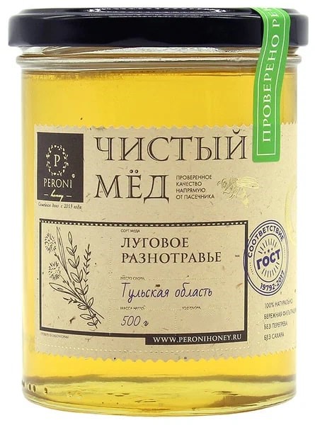Чистый мёд Peroni Honey 500 г. Луговое разнотравье (стекло)