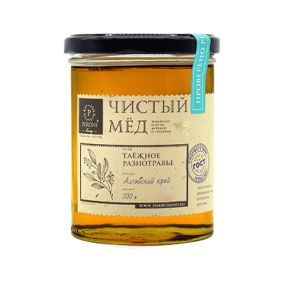 Чистый мёд Peroni Honey 500 г. Таёжное разнотравье (стекло)