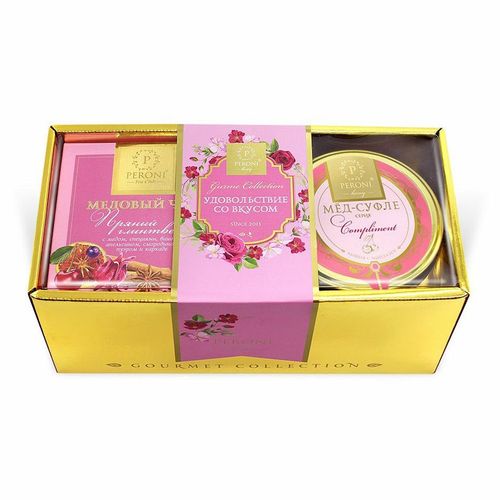 Набор Медовый пунш (Мёд-суфле Вишня с миндалем + чай Пряный глинтвейн в зол.упаковке)