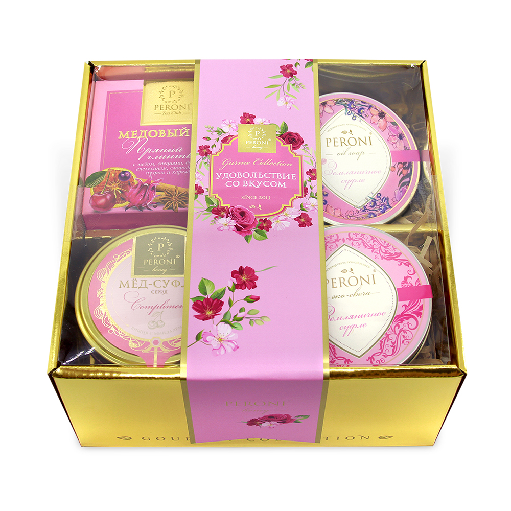 Набор Романтический №1(мёд-суфле 350г + чай + мыло и эко-свеча)