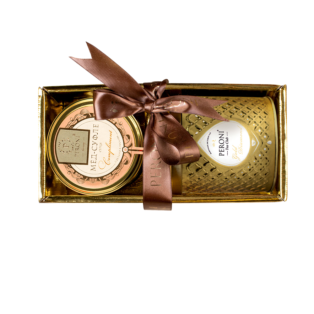 Набор Золотое чаепитие (brown) 350г мед-суфле, чай Масала в ж/б 70г