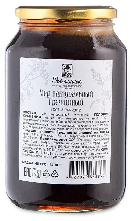 ТМ "Пчельник" натуральный Гречишный 1400г